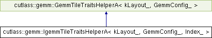 Inheritance diagram for cutlass::gemm::IgemmTileTraitsHelperA< kLayout_, GemmConfig_, Index_ >: